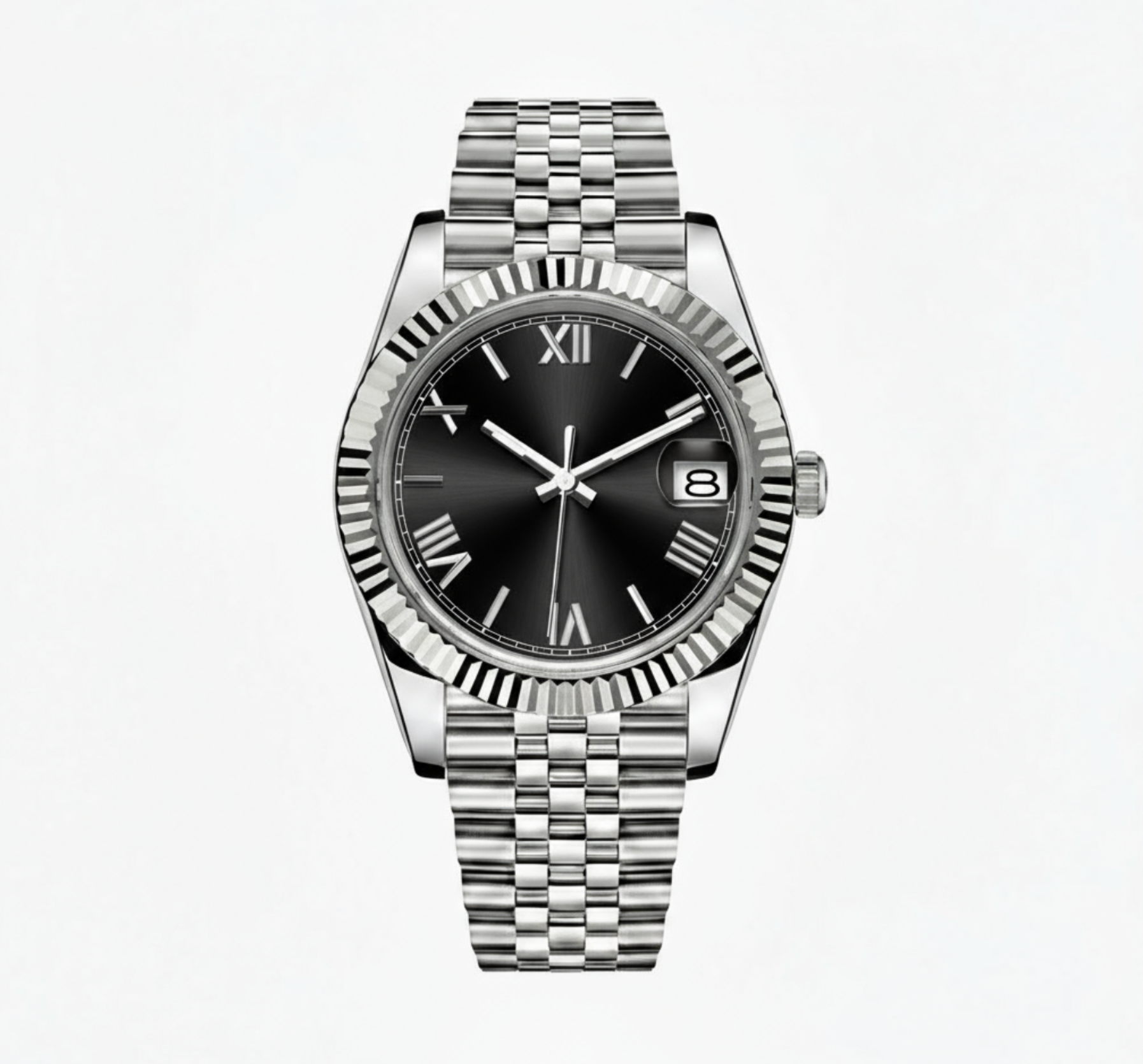 Powered by the reliable NH35 automatic movement and protected by a sapphire crystal, the Black Roman Dial Lux Edition is built for lasting precision and style. A transparent case back reveals the inner mechanics — a view that captures the art of horology in motion.